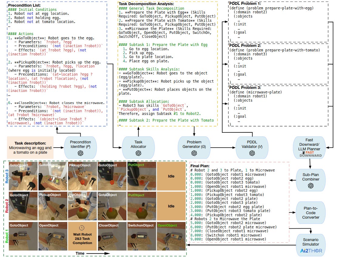 PDDL as the "Logistics Expert": Once the LLM has allocated sub-tasks, the PDDL components take over to handle the low-level, verifiable planning: